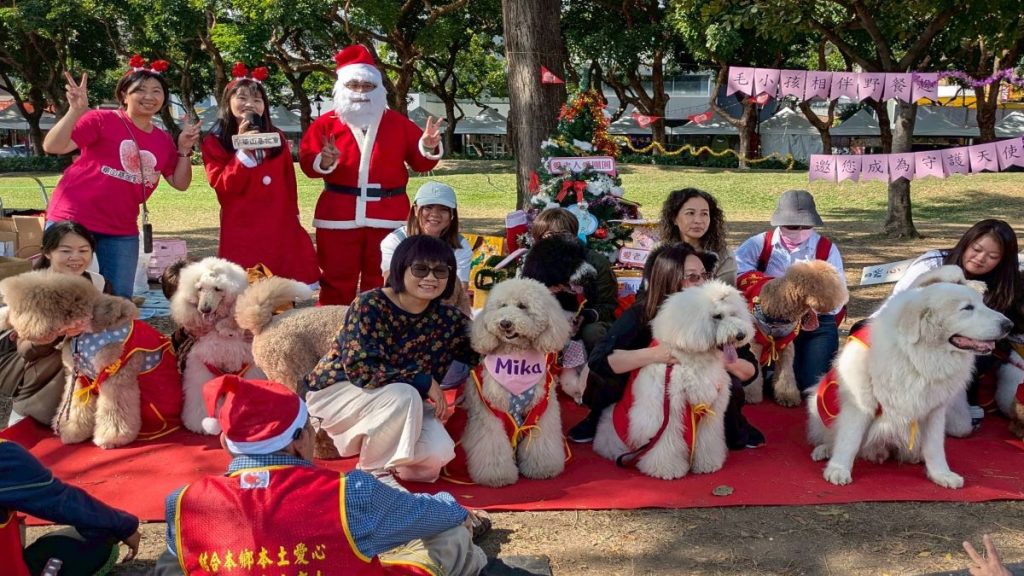 活動現場,十餘隻貴賓狗與大白熊犬一字排開,頸間繫上繡有「華山守護大使」的領巾,扮演半日「犬」站長與長輩互動,經過專業訓練的毛孩展現握手、敬禮、禱告、接球等才藝,更溫順地陪伴長輩野餐,不少長輩開心的抱著毛寶貝久久不放。