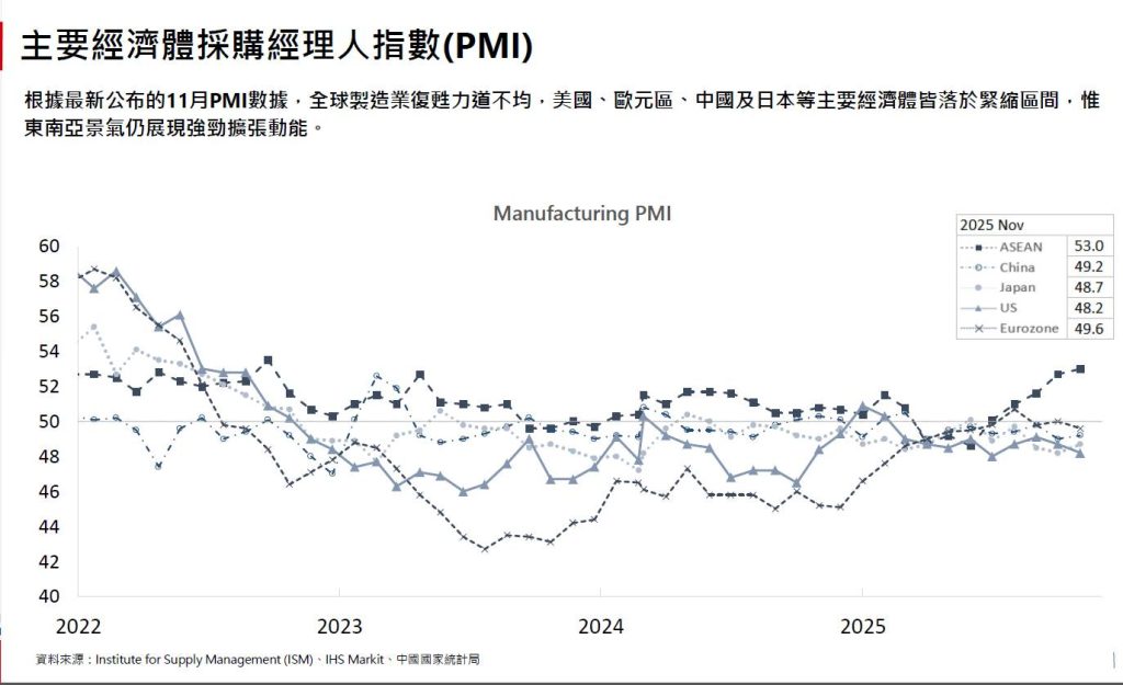 OECD在本月發布的全球經濟展望報告中,預測2025年全球經濟成長率為3.2%,2026年成長2.9%。2025年中國經濟成長率穩定在5%,2026年放緩至4.4%。OECD警告全球經濟前景仍顯脆弱,若貿易緊張局勢進一步升溫,恐將加劇經濟下滑風險。