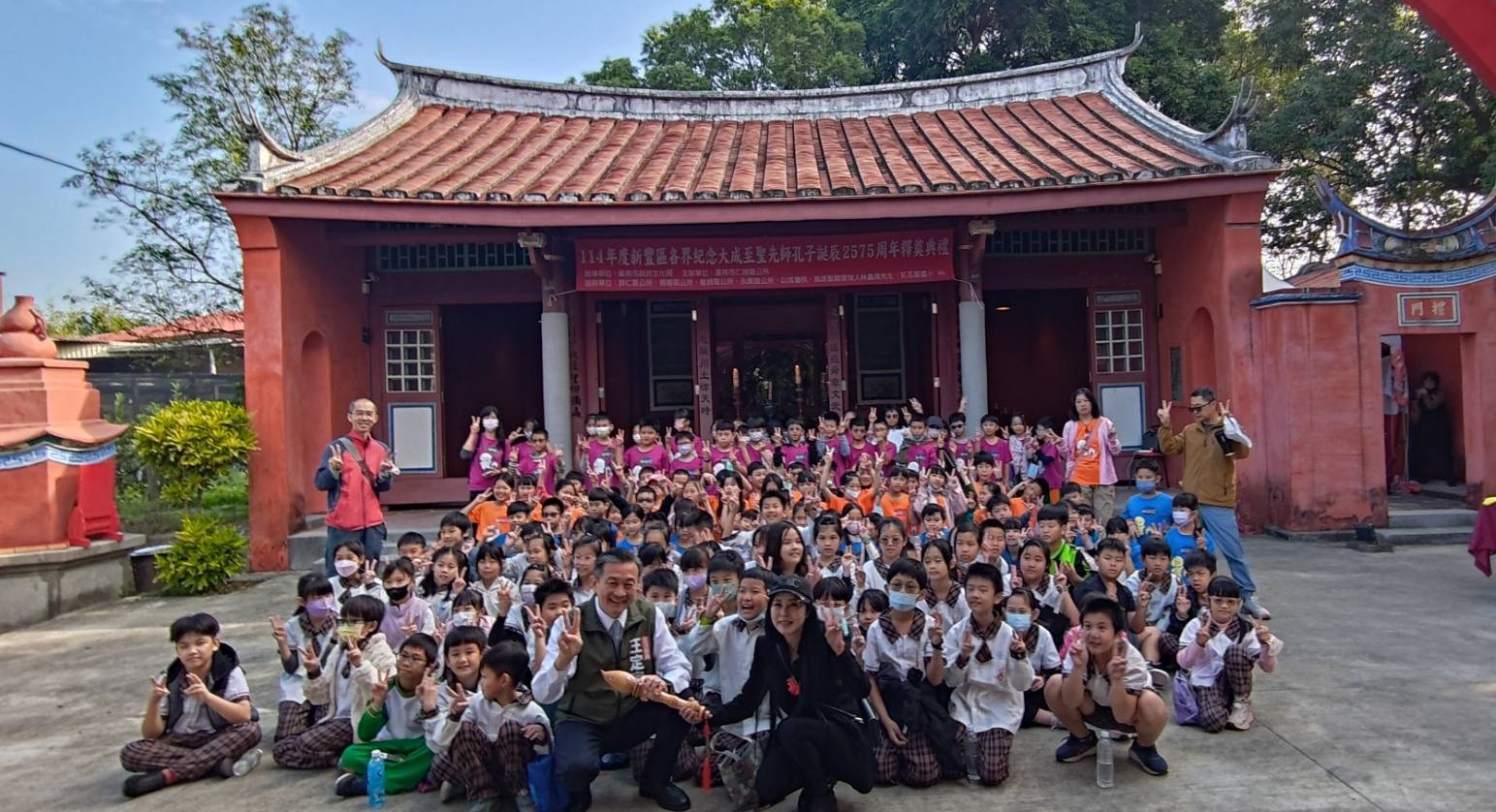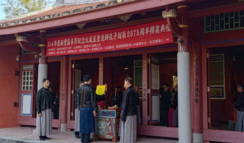 歸仁敦源聖廟二十三日舉行新豐區祭孔典禮,這是由仁德、關廟、龍崎、歸仁、永康區等五個區公所輪流主辦的祭孔儀式,也是國內少見選在農曆孔子誕辰舉行的祭孔典禮。今年由主辦公所仁德區長許博森擔任正獻官,新豐各區首長擔任陪獻官,立委王定委、市議員郭鴻儀、陳皇宇等民意代表及鄰近紅瓦厝國小的學童都到場祭祀,表達對至聖先師的敬意,儀式莊嚴隆重。