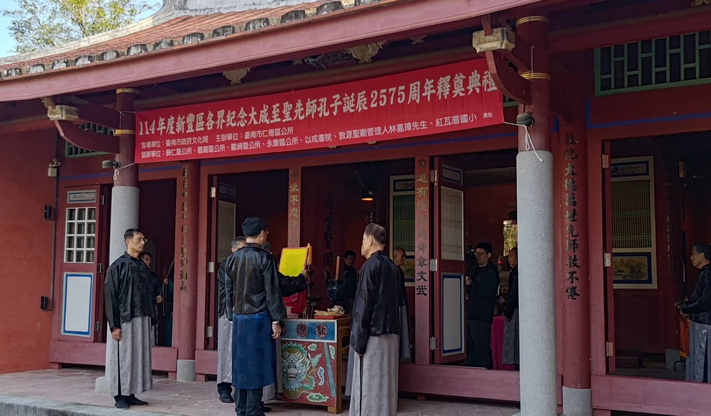 仁德區長許博森表示,敦源聖廟又稱「歸仁孔廟」、「新豐區孔廟」,供奉孔子祿位,於一九三五年由文人社團「敦源社」、詩人與地方仕紳們共同募款所建。在台南縣、市合併升格前,敦源聖廟與佳里昭清宮都是台南縣祭孔典禮的重要場地,也是新豐區文風的代表。今年適逢孔子二五七五週年誕辰,祭孔釋奠禮一切遵照古禮進行,雖有簡化,仍不失莊嚴肅穆。