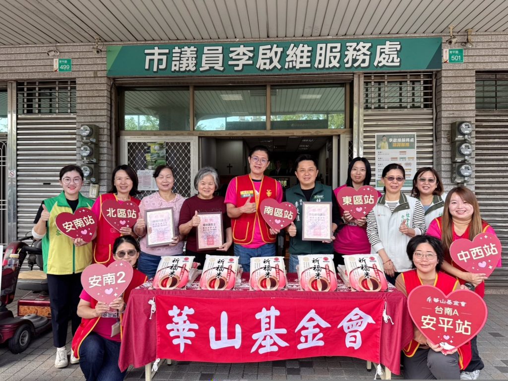 年終關懷,議員李啟維攜手善心人士和熱心企業共同捐贈逾兩千公斤米及八萬一千元等物資給華山基金會台南A區愛心天使站六站。華山基金會現正發起二0二六年「愛老人 愛團圓」公益行動,邀請民眾加入「送愛到家─認助計畫」。