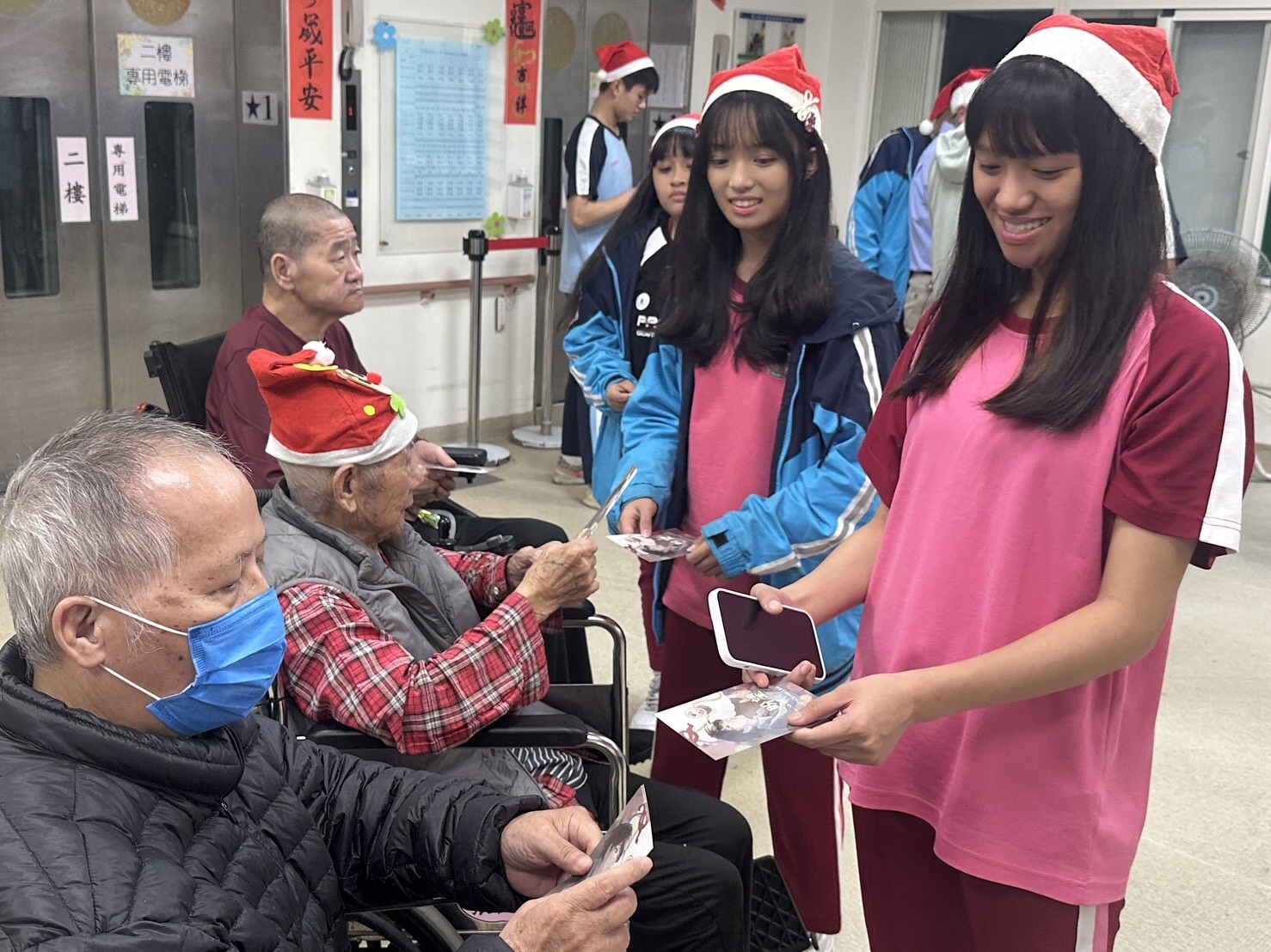 另外,海星中學學生們還精心準備耶誕卡片一一致贈給每位長輩,並溫柔地送上祝福話語,長輩們接過卡片倍感窩心。榮家也為長輩們準備清境農場的茶糖,祝福學生們健康平安。