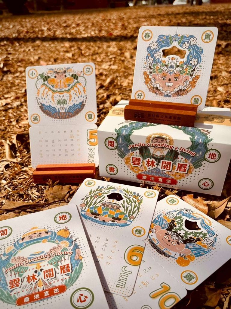 二○二六年《雲林閱曆》以「廿四節氣文學閱曆:大地精靈與節氣之神」為設計核心,從「每日翻閱」到進化「每月珍藏」的藝術型桌曆,更突破往年桌曆的使用框架,採用「木質底座展示型」設計,兼具藝術陳列與實用機能。每月圖卡可獨立拆卸DIY作為文學書籤、藝術小卡,木質底座可作為手機及名片展示架,大幅延長產品生命週期。外盒採用環保瓦楞紙材,搭配典雅「蜜柑體」,復刻「物產豐收小果箱」意象,象徵雲林農業大縣的豐饒底蘊與對永續環境的堅持,一開盒就像打開一份來自雲林大地的祝福,幸福感滿滿。