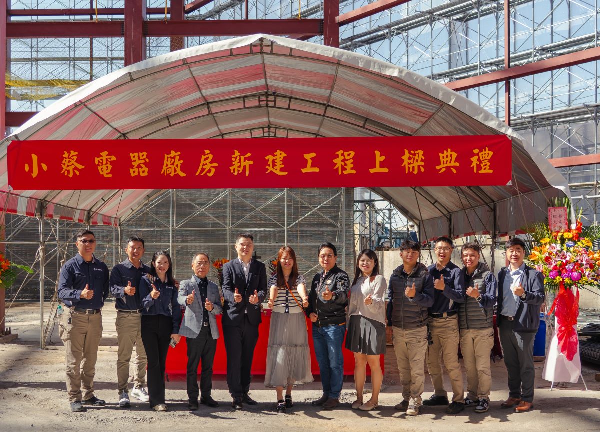 深耕家電市場多年的小蔡電器,23日舉辦廠房新建工程上樑典禮,典禮現場由小蔡電器董事長蔡在隆親自主持,率領總經理吳思慧及工程團隊,攜手澤楨營造、賴文魁建築師事務所等合作夥伴誠心祈福,共同見證這座集結智慧物流與綠色願景的「家電新地標」鋼樑冉冉升起。