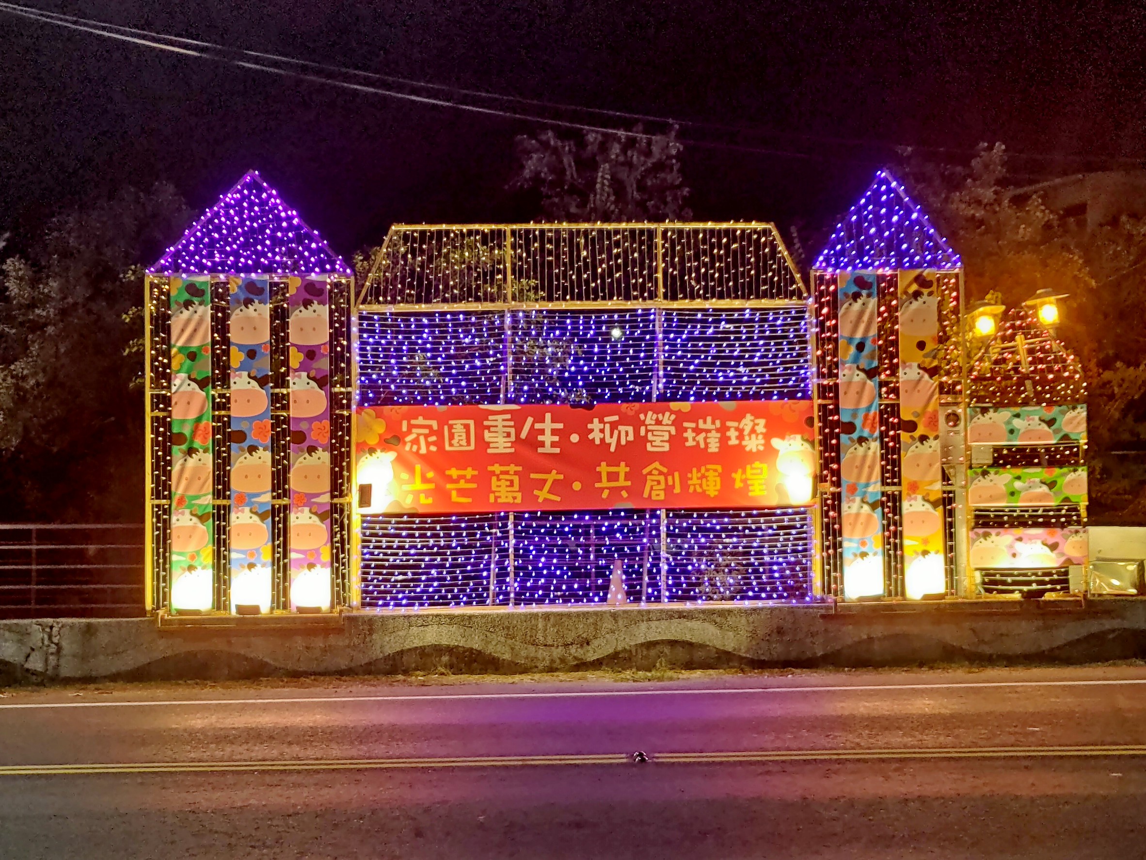 燈光設計融合柳營在地特色,包括「牛乳之鄉」酪農文化、「德元埤荷蘭村」風車地景,以及「南瀛八景」太康綠色隧道,透過金色、白色、桃紅色與藍色光影交織,展現豐富層次的視覺饗宴。