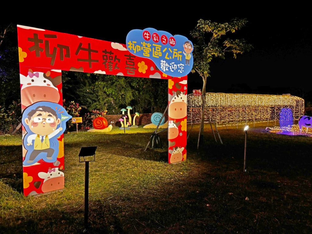柳營公所說,這次光影藝術結合柳營代表性的乳牛意象,與迎接馬年到來,打造可愛又歡樂的「柳牛歡喜」。