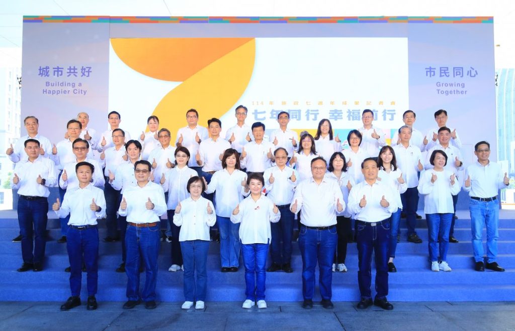 台中市長盧秀燕率領市府團隊執政即將邁向第八年,二十四日以「七年同行、幸福前行」為主軸,向市民報告七年來的施政成果。她特別回顧第一年就職典禮上許下的諾言,以「顧家最重要的三件事」巧妙比喻市政治理,感謝市民家人一路相挺與支持,她將為台中奮鬥到最後一秒鐘。