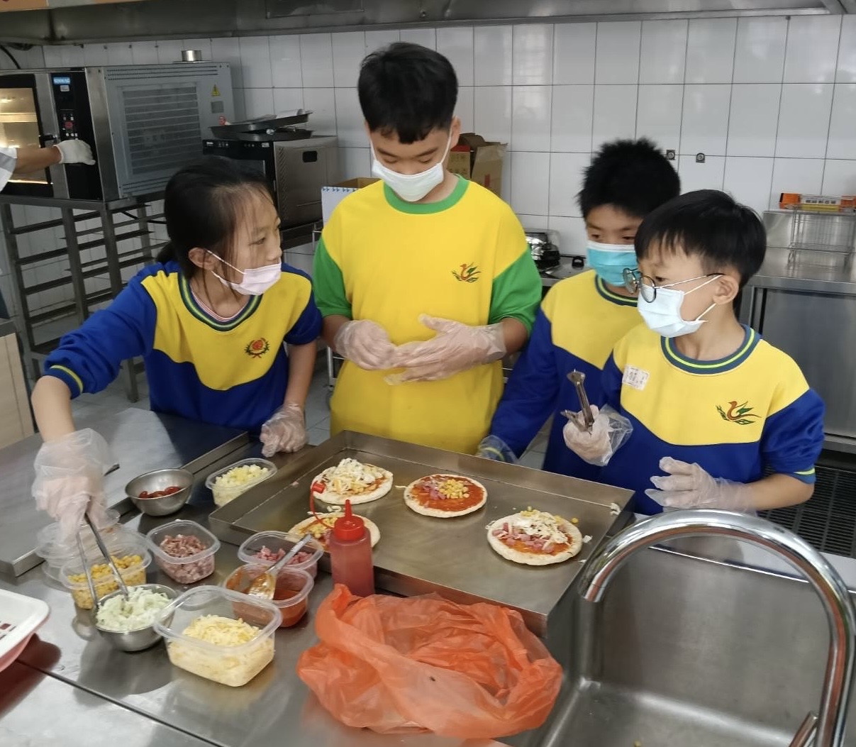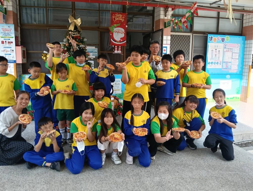 以往選用官田窯烤披薩,今年則選用專業型炫風式烤箱,除縮短烹調時間,也提升食品安全,不須十分鐘,色香味俱全的披薩陸續出爐,香氣在食育教室中飄散,令人食指大動。