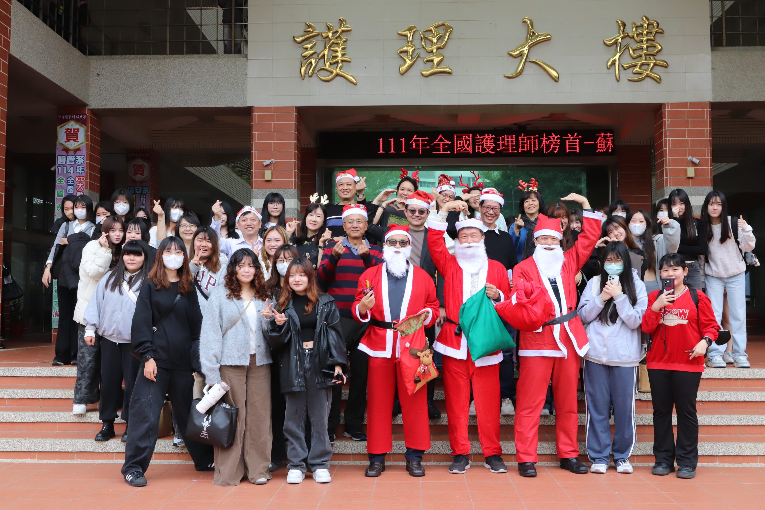 迎接耶誕節,中華醫事科大二十四日出現三位耶誕老公公帶著一群麋鹿現身校園,沿途發送糖果、餅乾,也進到教室和師生同樂;耶誕歌曲響徹校園,引來師生驚喜歡呼,更有學生搶著跟耶誕老人合照,為校園掀起歡樂耶誕的熱潮,氣氛溫馨又熱鬧。