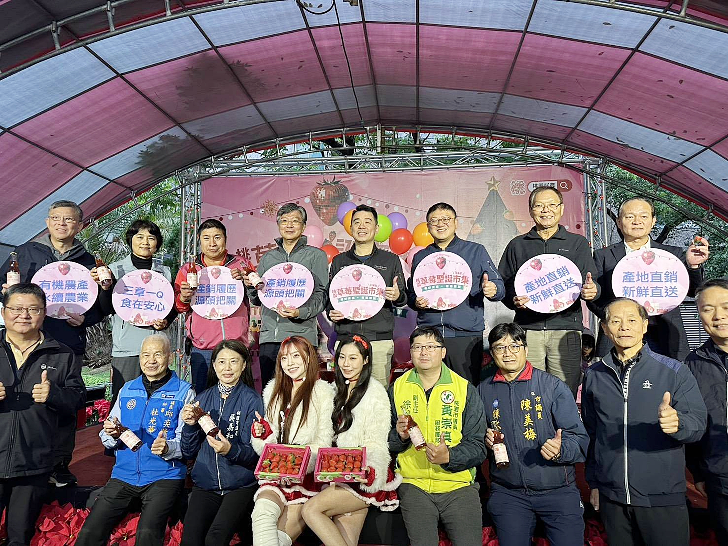 「一一四年桃園草莓食農聖誕市集」二十五日於中壢銀河廣場熱鬧登場,活動將連辦四天持續至二十八日,桃園市副秘書長金志聿出席開幕活動,公布全新桃園市草莓農場地圖,亦同步舉辦「草莓氣泡飲」新品發表;透過闖關活動、食農體驗及桃園好農市集展售等,來推廣桃園草莓產業及食農教育。