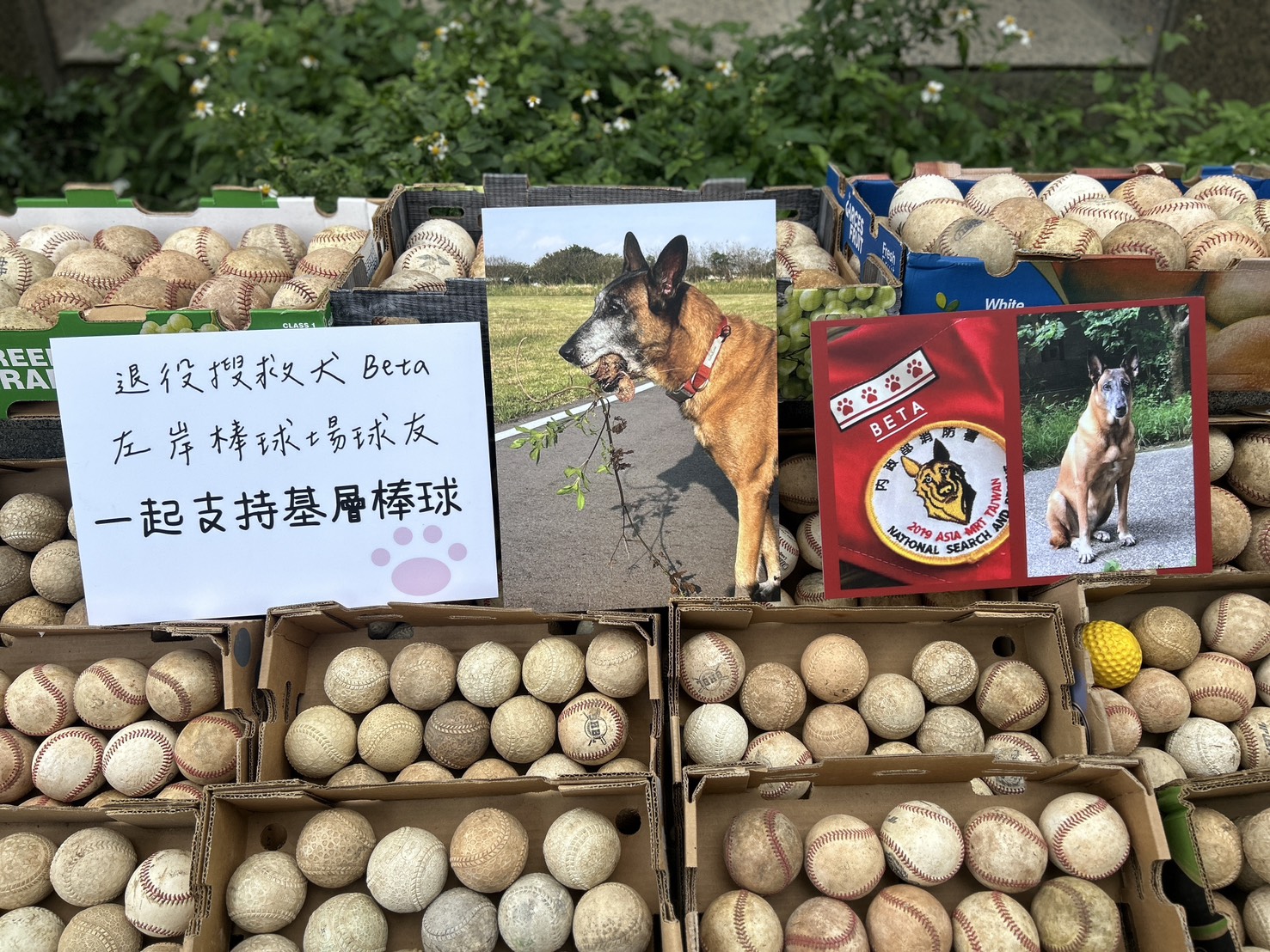 曾榮獲國際MRT搜救犬認證,並授階一線四的退役新北市搜救犬Beta,憑藉著神奇的嗅覺及受過的特搜訓練陸續尋獲出逾千顆棒球。耶誕夜這天在新竹市水源里曾翰揚里長的協助下,將約700顆狀態良好的棒壘球贈與在基層棒球領域認真服務的球隊教練。