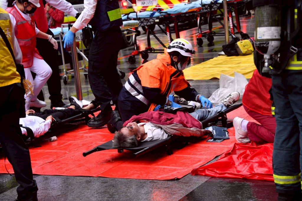 因應一二一九事件與跨年人潮,台北市府二十六日在捷運市府站舉行高強度危安演練,模擬無差別攻擊強化跨年維安。(北市府提供)