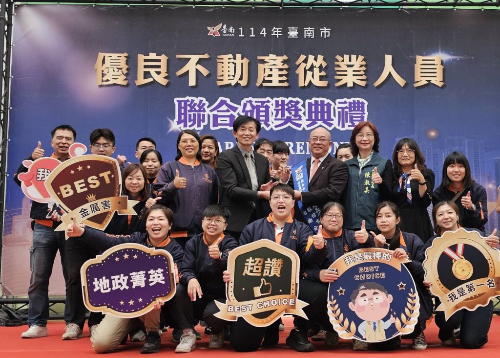 台南市政府地政局二十六日舉行優良不動產從業人員聯合頒獎典禮,表揚十二位優良從業人員及一家租賃服務業。