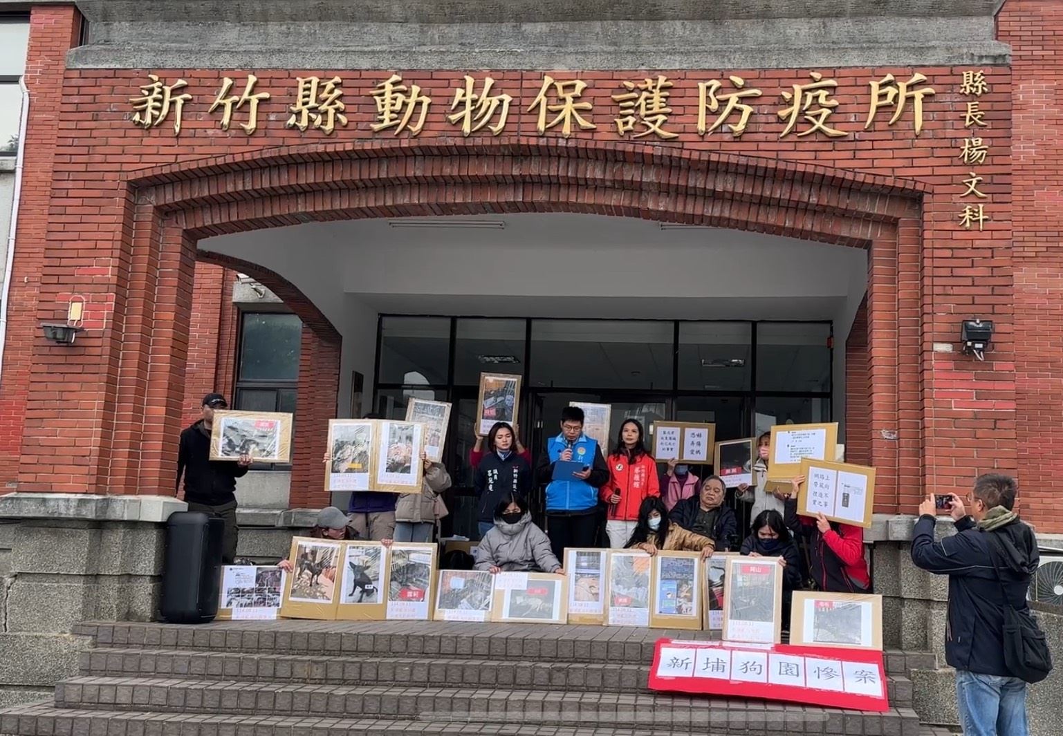 有關新竹縣動物保護防疫所查獲新埔鎮狗園犬隻不當飼養案件,多位新竹縣議員、受害飼主代表及關心動物權益之民間團體與愛心人士, 日前至動保所前關心並提出包括「裁罰期間仍持續圈養犬隻」、「相關人士遭恐嚇與網路霸凌」、「為受害飼主及死亡犬隻討回公道」及「提醒社會大眾勿再受騙捐款或託付犬隻」等四項訴求。