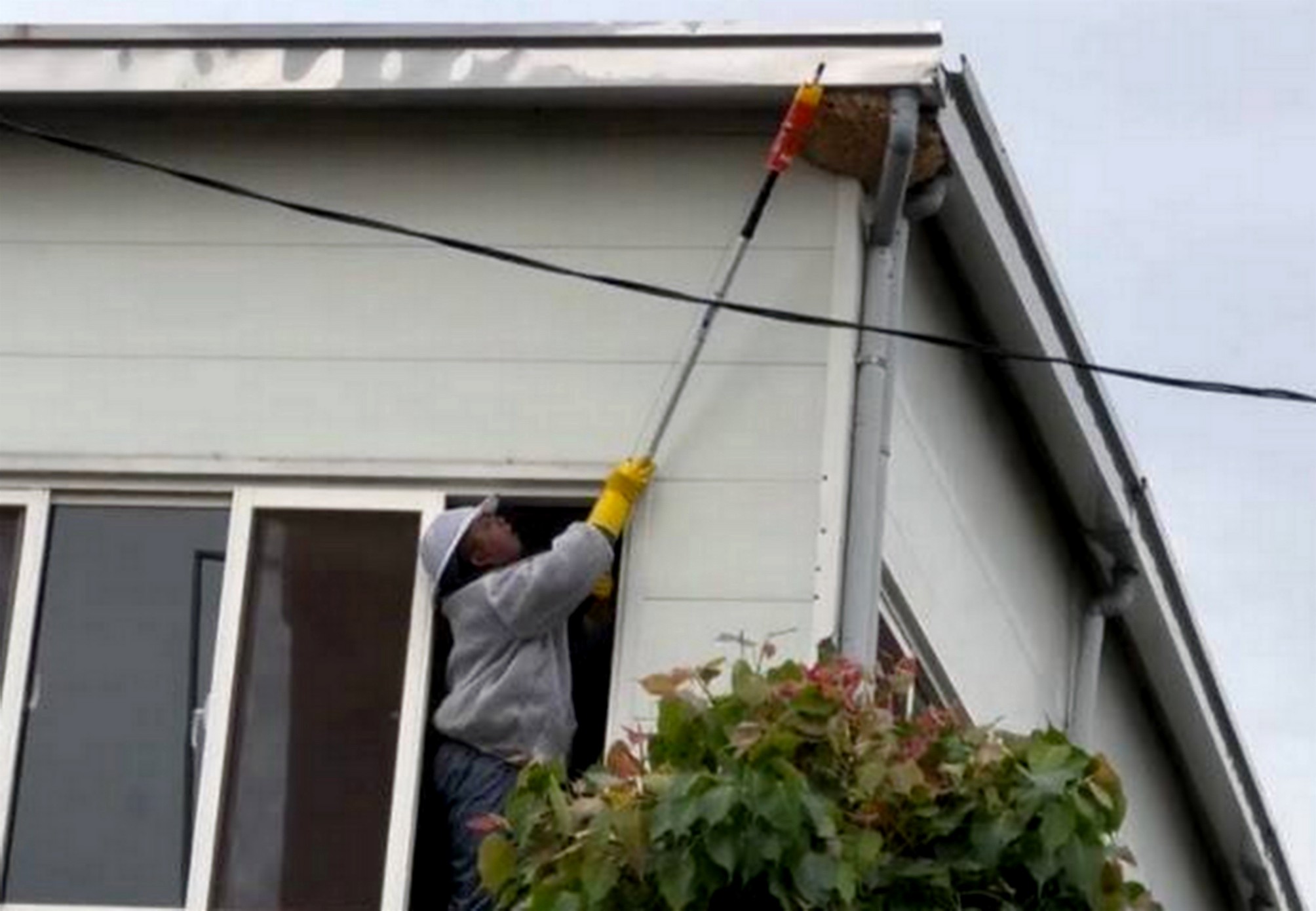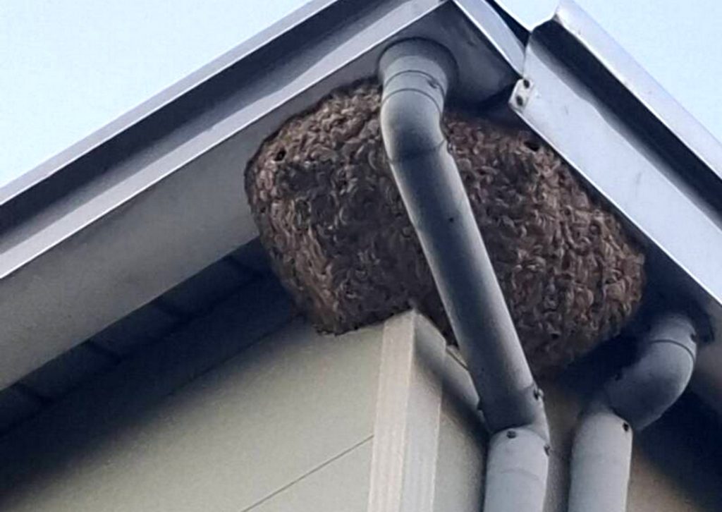 巨大蜂巢緊貼屋簷與管線,體積驚人,表面紋理清楚,已是成熟大型蜂巢,一旦受到驚擾,後果不堪設想,老闆不敢大意,立刻暫停該區域活動,並緊急聯絡民間捕蜂業者到場處理,所幸過程順利,未釀成任何人員受傷,虛驚一場。
