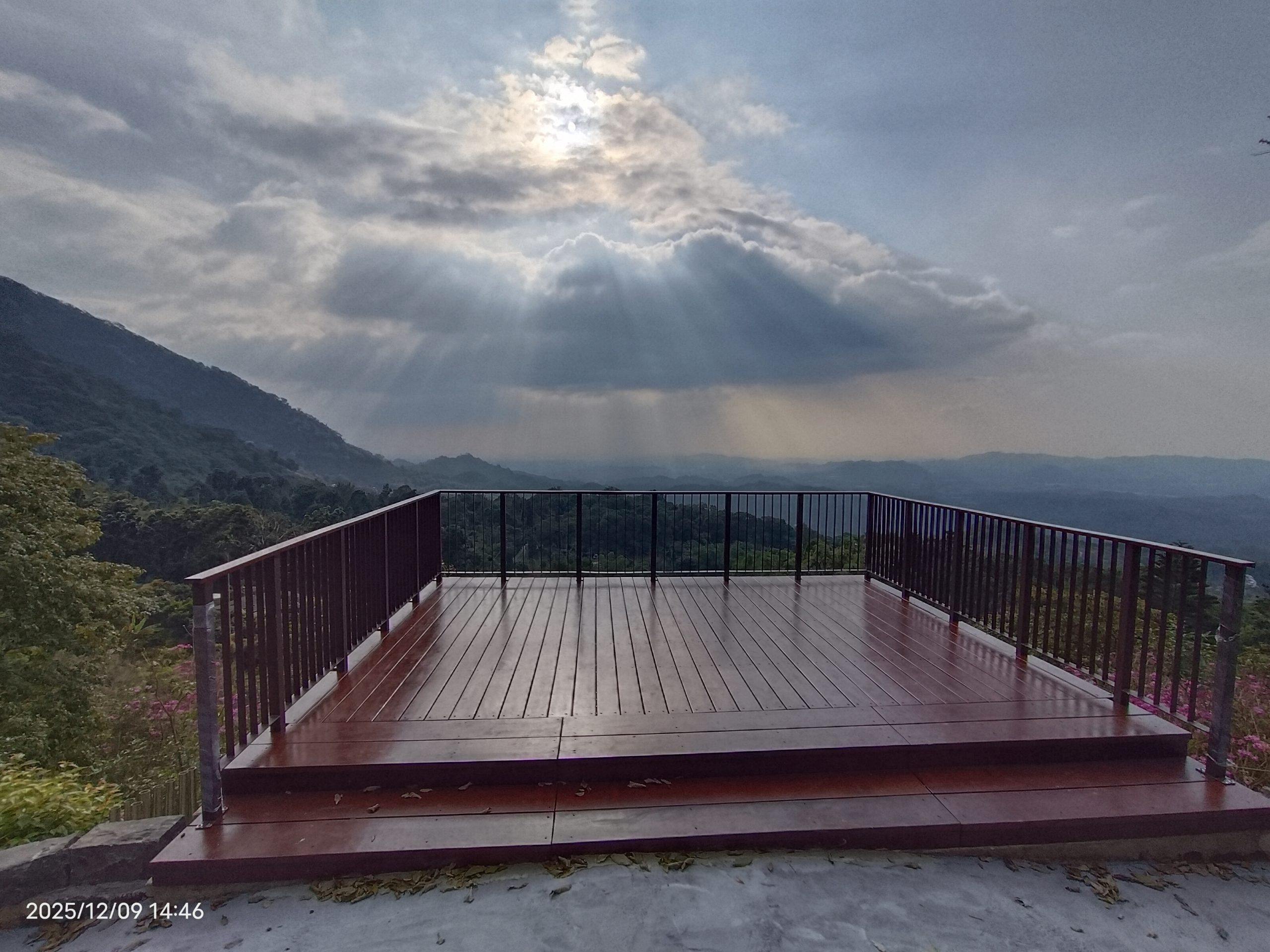 梅嶺的梅峰古道再增設防滑措施,景觀台也完成重建。(記者張淑娟攝)