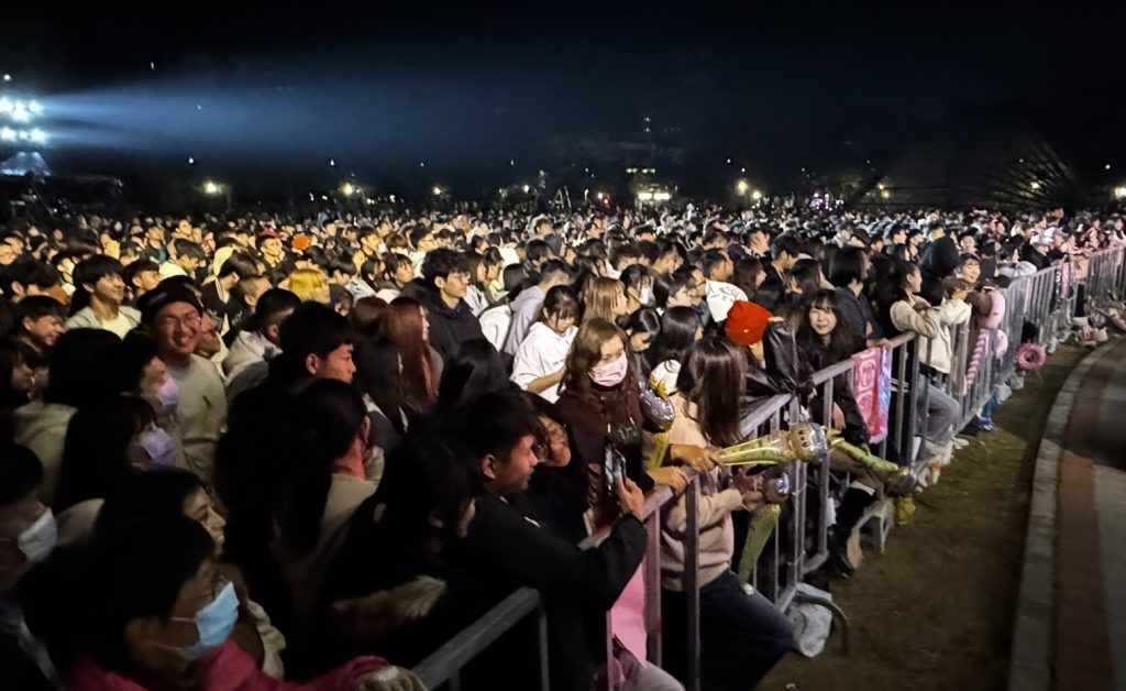 二0二六台南市耶誕跨年系列活動南瀛草地音樂會廿七日晚上在新營南瀛綠都心登場,包括玖壹壹、林隆璇、郭書瑤等明星都帶來精采的演出,湧進現場觀賞的人潮跟去年差不多。為防範發生隨機攻擊事件,市警局動員逾一百名警員戒備,同時出動偵爆犬安檢。
