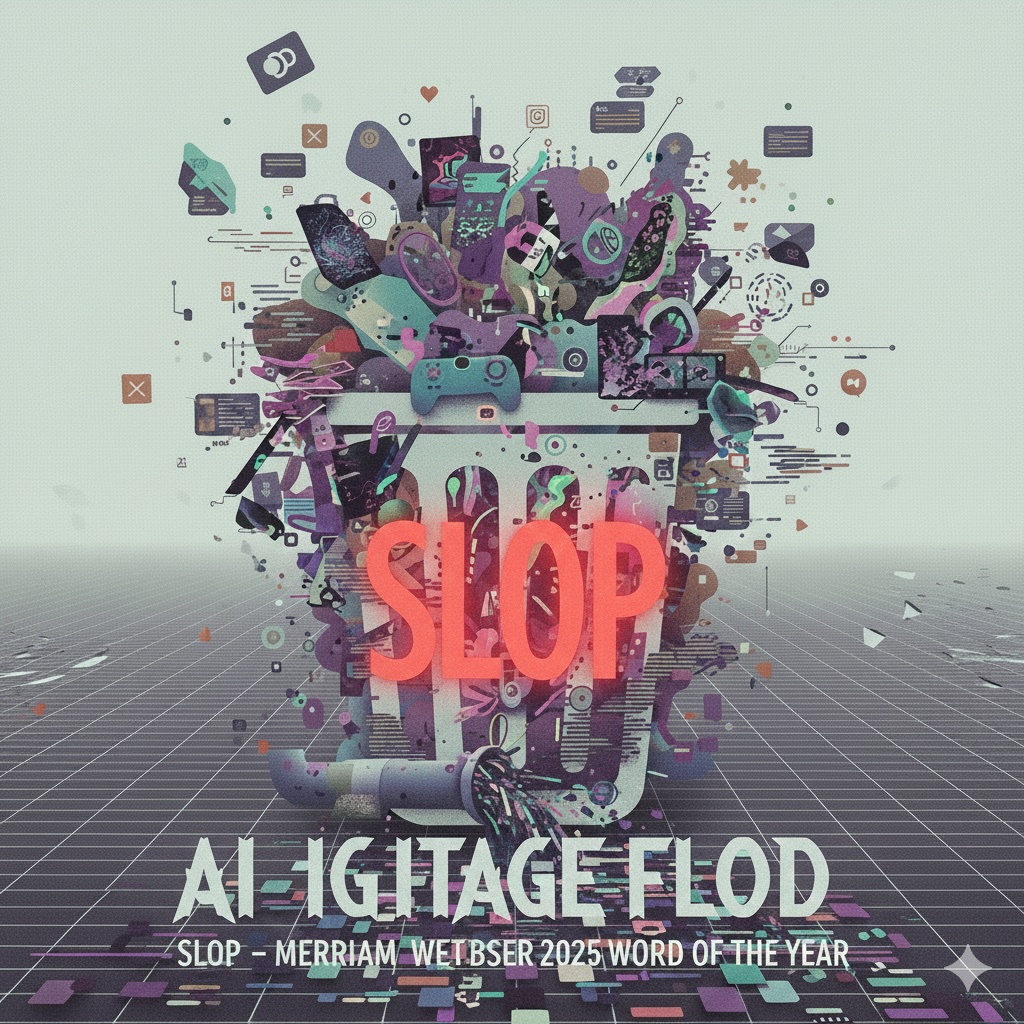 「slop」獲選韋氏特辭典2025年代表字。(圖:由Gemini生成)