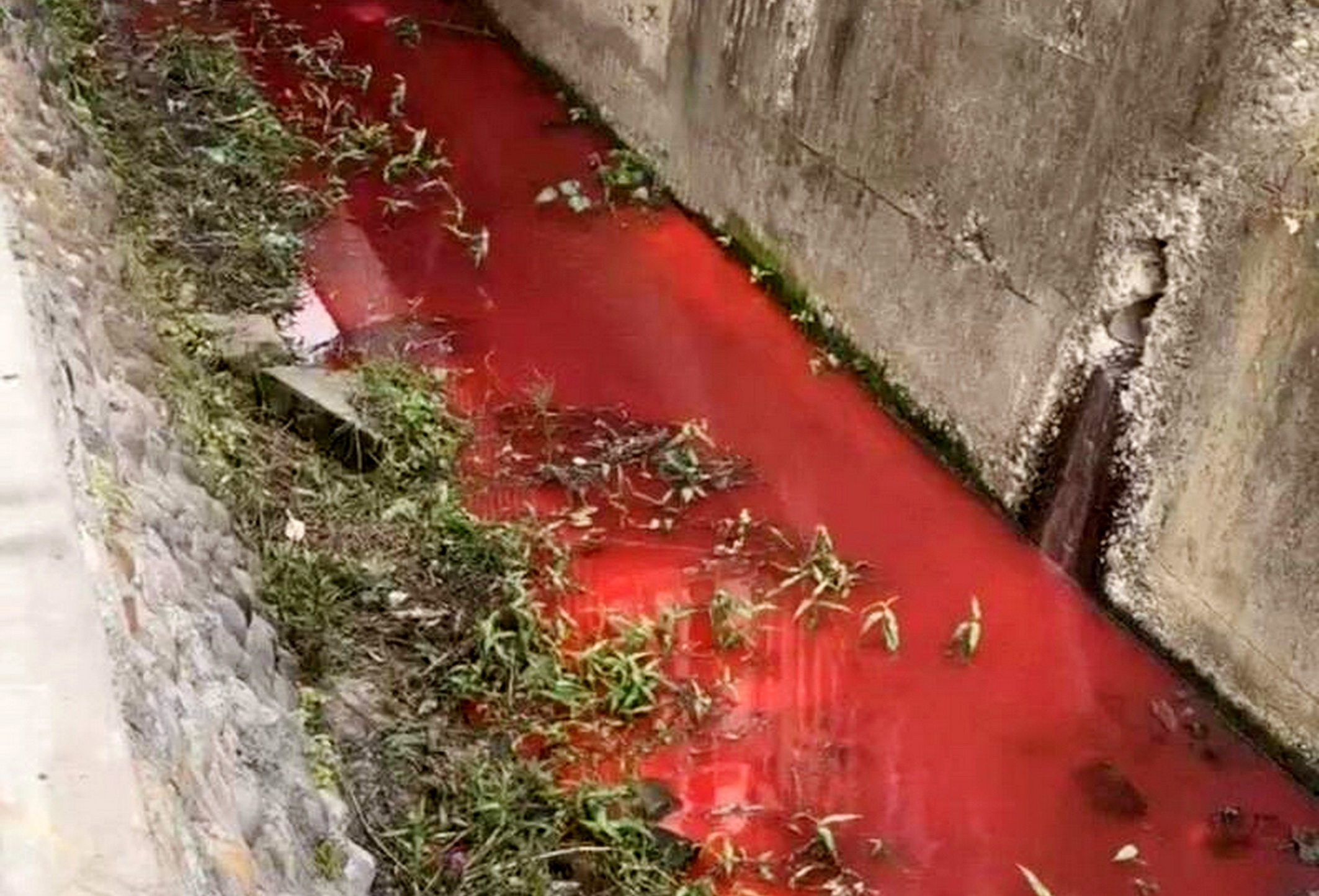 台中市大里區國中路一七六巷旁一條灌排兩用的排水溝,二十六日下午民眾發現整條排水溝突然被染成鮮紅色,懷疑有不肖工廠偷排廢水影響環境,大元里長林瑞興接獲通報趕緊通報公所和環保局,環保局稽查人員到場後發現水質已變清澈,經採樣水質無異狀,民眾希望環保局往上游追查揪出偷排元凶重罰。