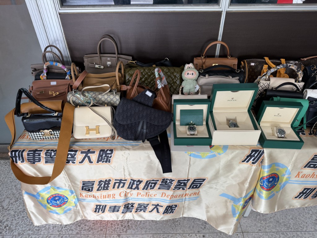 警方查扣洗錢集團多款名牌包、名錶、汽車等疑似洗錢不法獲利。(記者張翔翻攝)