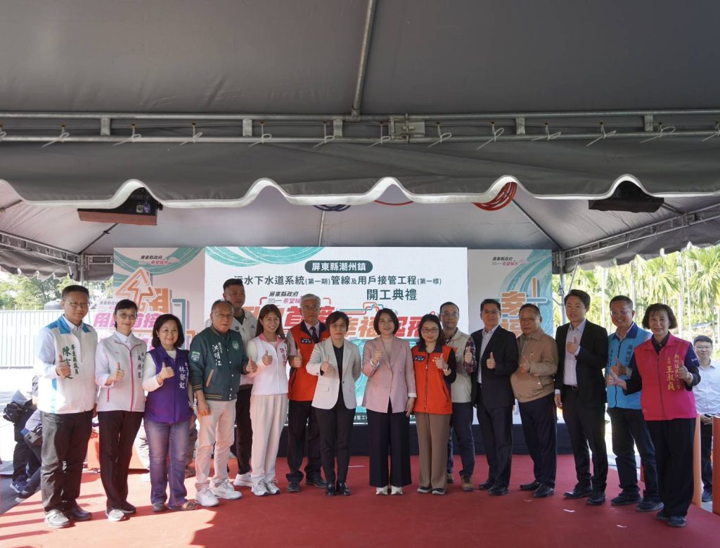 屏東縣政府持續推動潮州鎮污水下水道建設,二十九日於潮州水資工務所舉行「屏東縣潮州鎮污水下水道系統第一期管線及用戶接管工程第一標」開工典禮,由縣長周春米、內政部長劉世芳共同主持,該工程經費二億八千五百萬元,其中縣府自籌二千零一萬三千元,其餘由中央補助,預計一一六年十一月完工,完工後將有效提升整體環境衛生品質與居住安全。