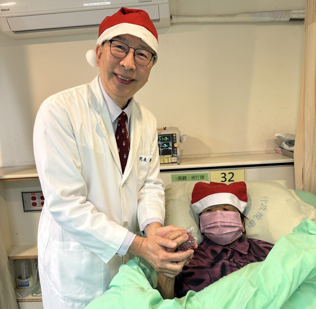 洗腎33年、84歲的劉姓腎友(右)成功逆轉人生。左為豐原醫院院長李永恒。