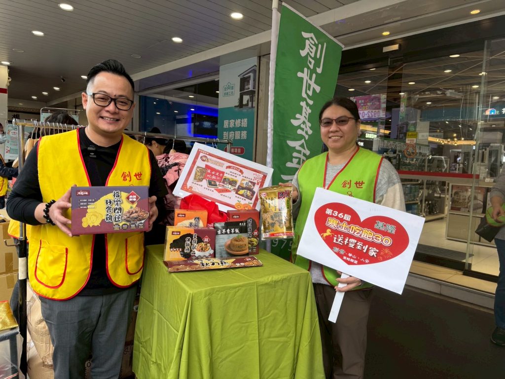 童子瑋多年來持續投入創世「送禮到家」服務,走入植物人家庭送上年節關懷;此次更加入義賣行列協助叫賣、與民眾互動。現場集結多家愛心廠商,義賣商品包含美食、玩具及生活用品,並規劃滿額贈、捐發票換好禮等活動,義賣所得全數作為專案經費,幫助更多需要協助的家庭。