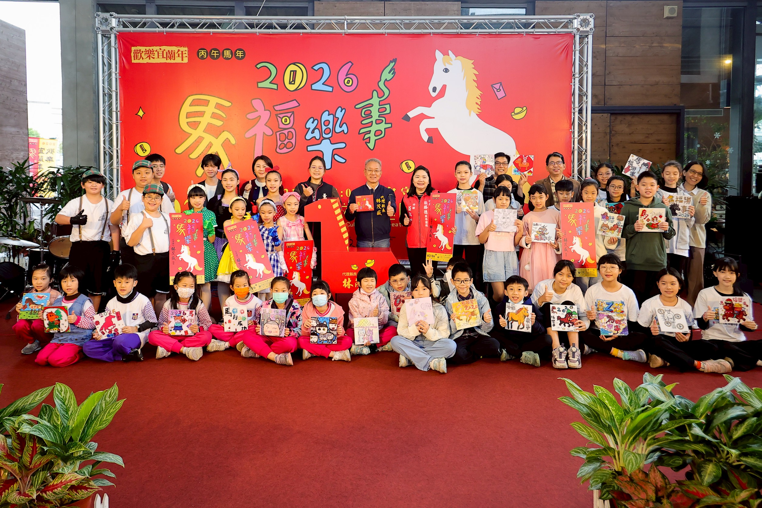 代理縣長林茂盛親自揭曉馬年紀念紅包及春聯設計成果,林茂盛表示,邁入第三十三年的歡樂宜蘭年,今年主視覺以「馬福樂事」為主題,是由成功國小美術班學生共同創作;紀念紅包的立體馬結合存錢筒功能,讓民眾DIY摺出象徵財源滾滾來的存錢筒,透過紅包傳遞「福氣在路上、馬上有錢、好事接連來」的祝福,期盼大家在新的一年勇往直前,收進的不只是紅包,更是滿滿的美好與樂事,一起迎向精彩不凡的Marvelous馬年!