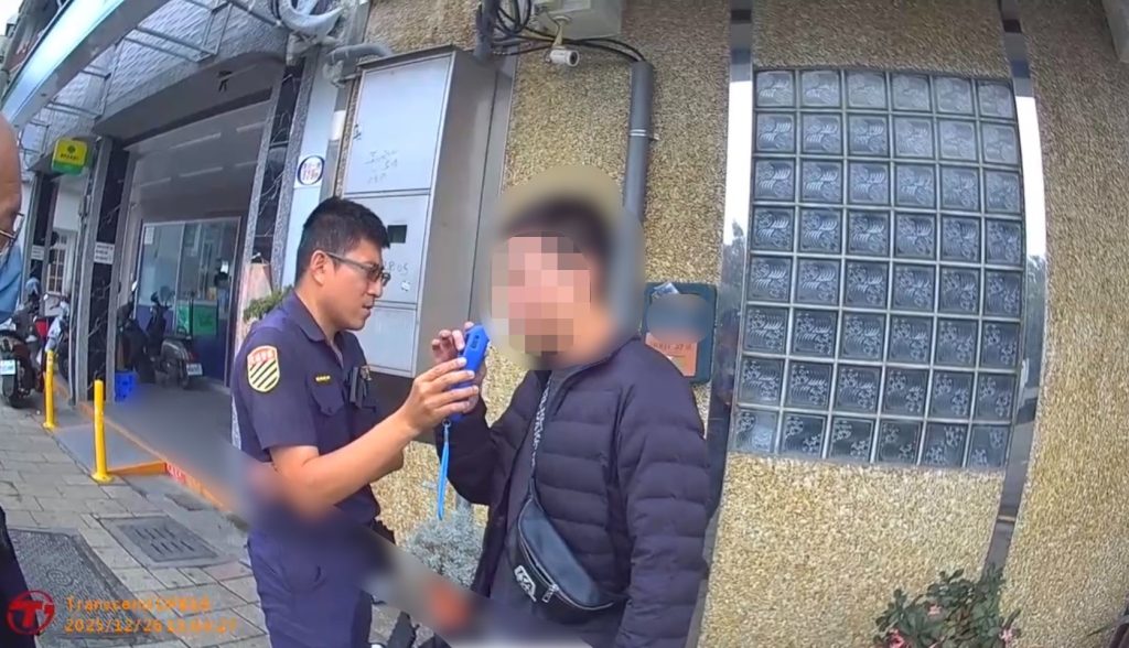 駕駛李姓男子身上散發濃厚酒氣,經酒測值超過法定標準,現場執行附帶搜索,復於其外套內查獲菸彈一顆。(讀者提供)