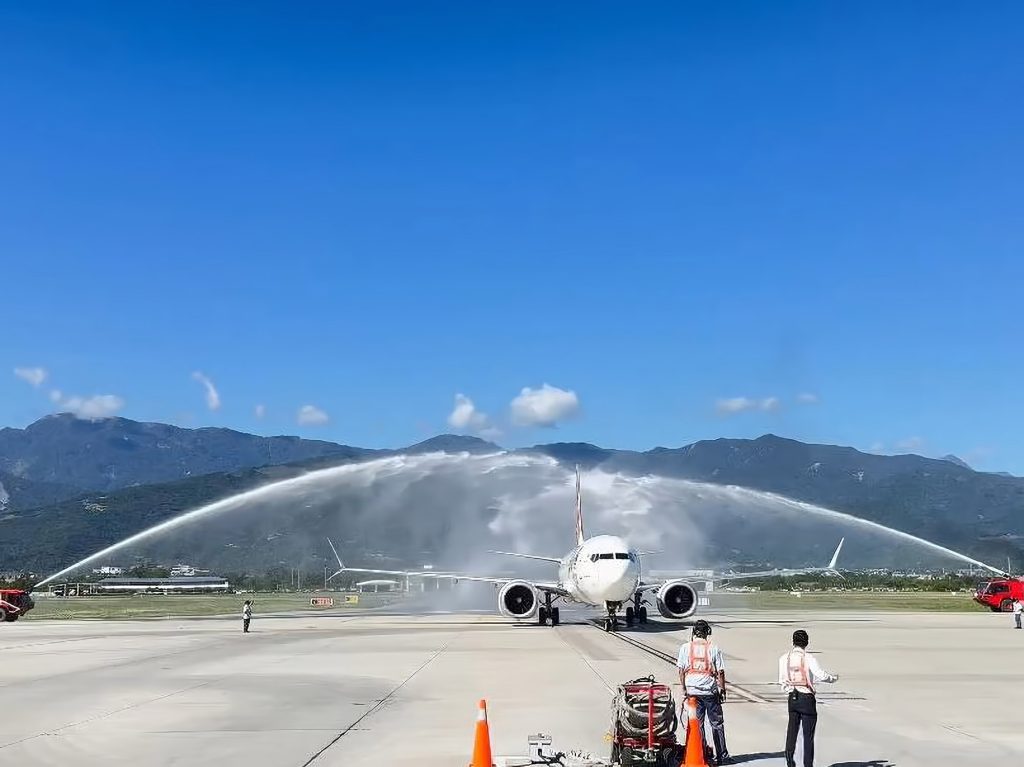 包機首航一五六名國際旅客三十日中午抵達台東,此次除走訪台東自然景點、品嚐在地美食,也將參加「二0二六台東跨年晚會」。