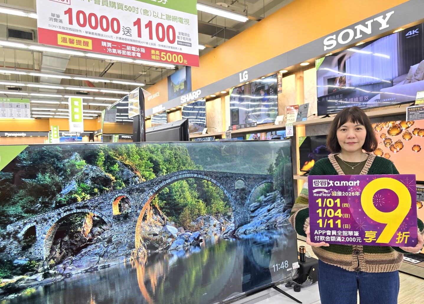 愛買量販推家電豪禮送到爽活動外,指定日期更享9折回饋。