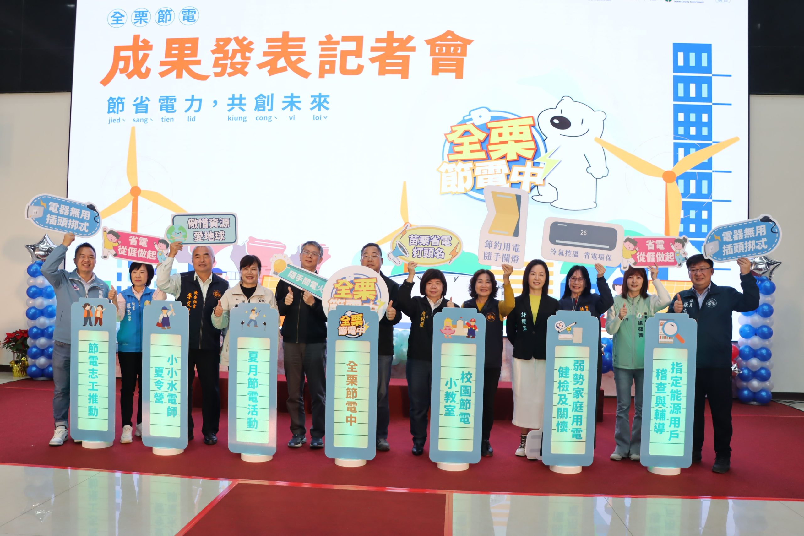 一一四年全力節電成果發表會三十日上午在苗栗縣政府一辦大廳舉行,活動並邀請地方民意代表參與,同時頒獎表揚協助弱勢節電健檢的聯大師生、協助節電健檢的地方村里長、水電師傅及節電志工們,感謝他們為能源永續,節省電力付出的辛勞。