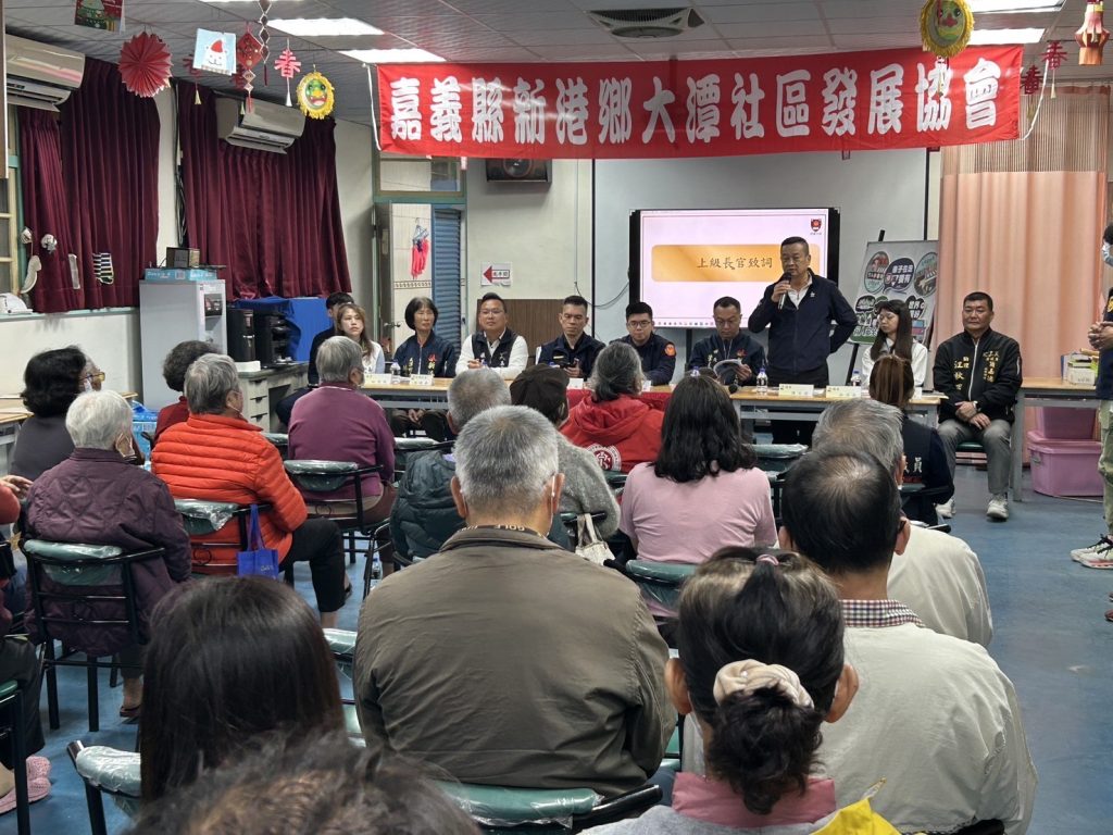 嘉義縣警察局民雄分局新港分駐日前於大潭村社區活動中心舉辦114年第4季社區治安會議,吸引多位村民及地方民意代表踴躍參與,警方透過面對面宣導及實際案例分享,針對防詐騙、毒品防制及交通安全等議題進行說明,期盼凝聚警民力量,共同提升社區整體安全防護能量。