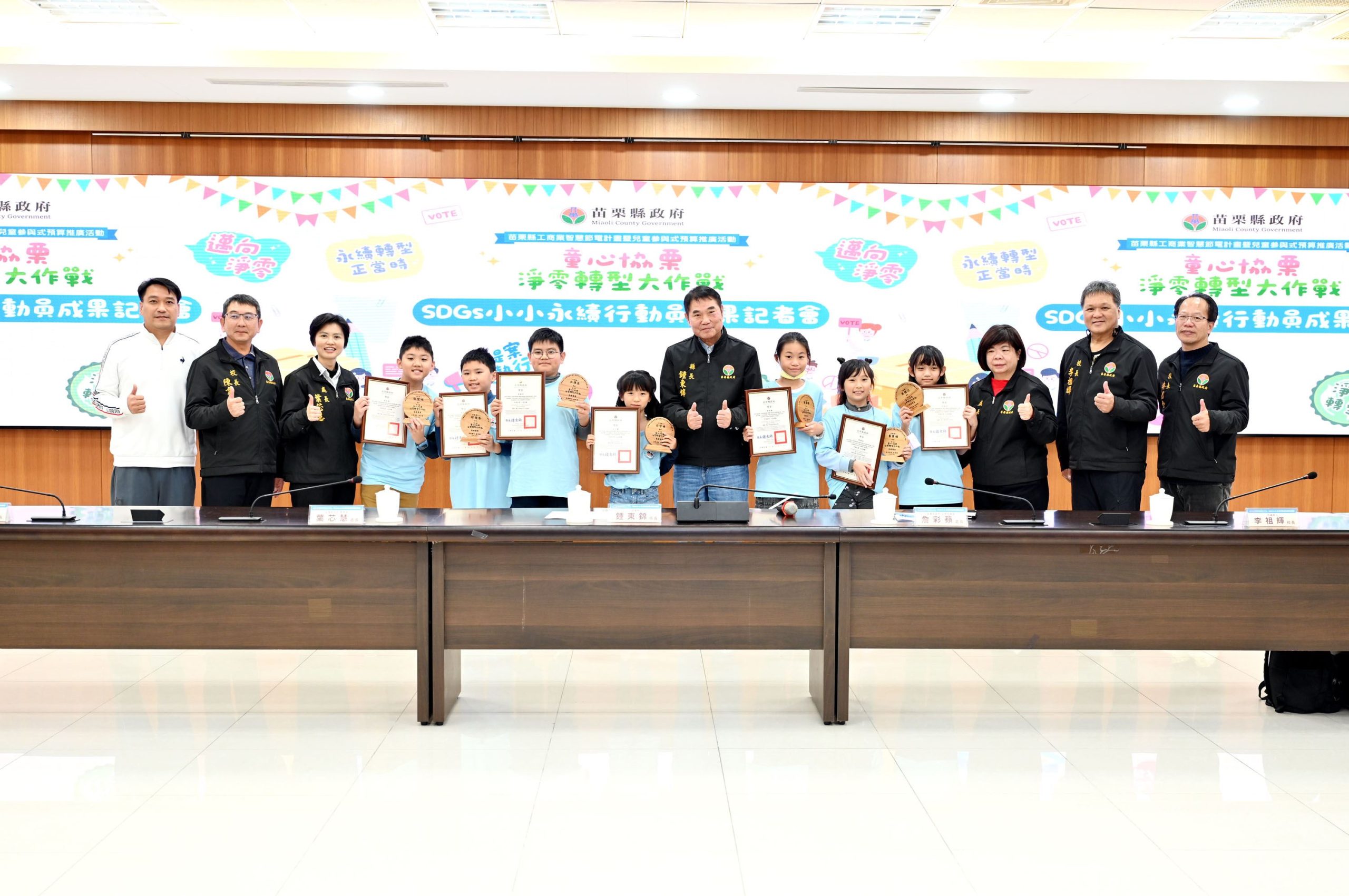 苗栗縣政府舉辦首屆「童心協栗、淨零轉型大作戰-SDGs 小小永續行動員」,累計吸引超過 一千五百名來自竹南、後龍、通霄及苑裡等海線地區的學童參與,並同步培訓五十六位大專院校青年夥伴投入協力。