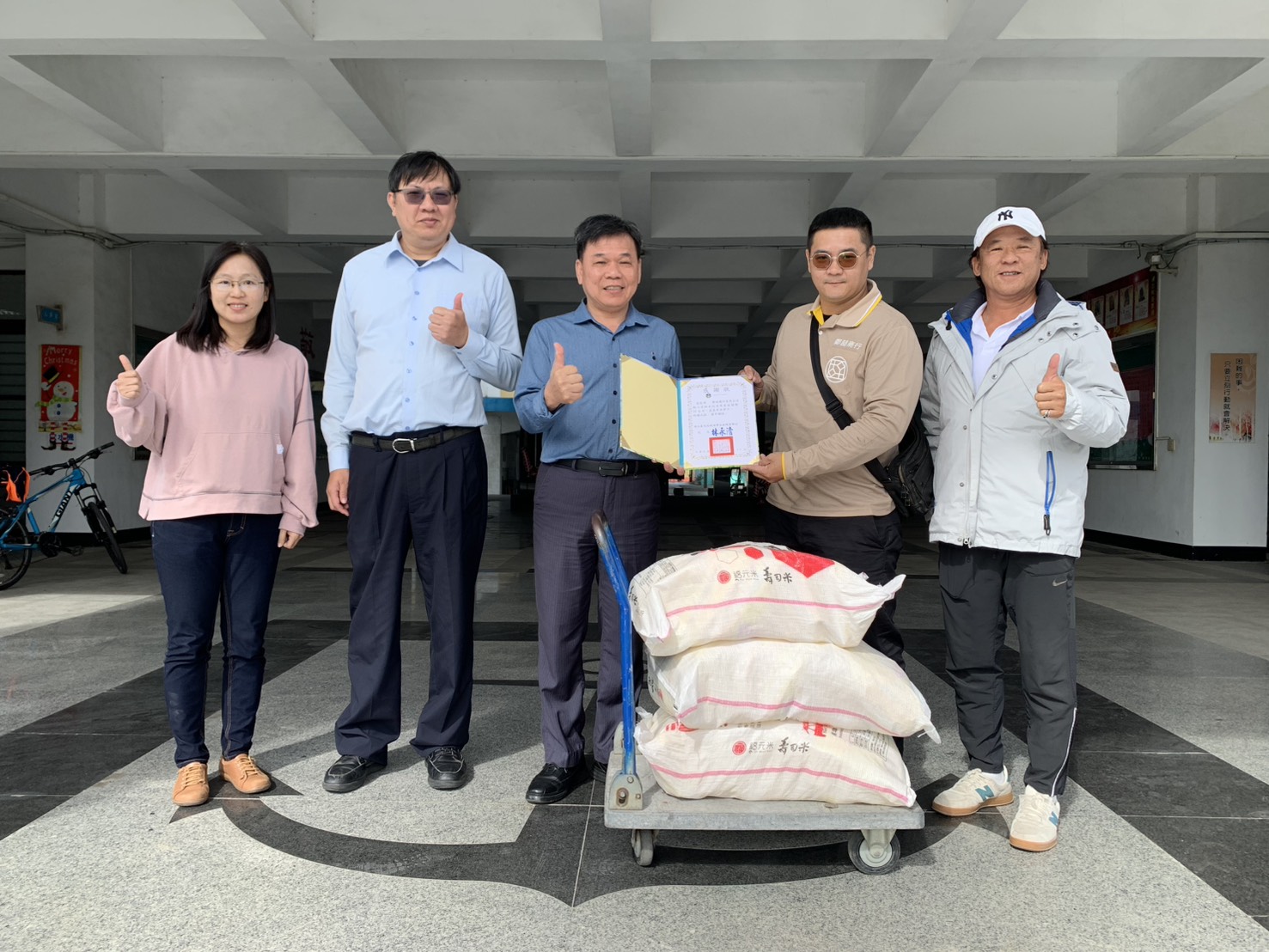台南海事十二月卅日辦理捐贈儀式,由校長林永清代表接受鄭喆商行愛心物資,林永清強調,每一包白米對於清寒家庭來說,都是最實質的溫暖支持。