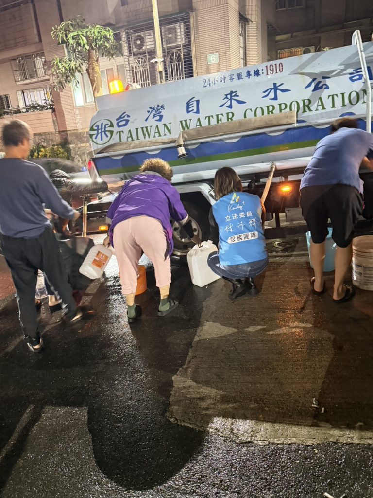 中山區「喜市社區」二十八日晚間因強震導致供水管線受損。立委林沛祥協調自來水公司派遣水車進駐社區,確保住戶基本生活用水需求。