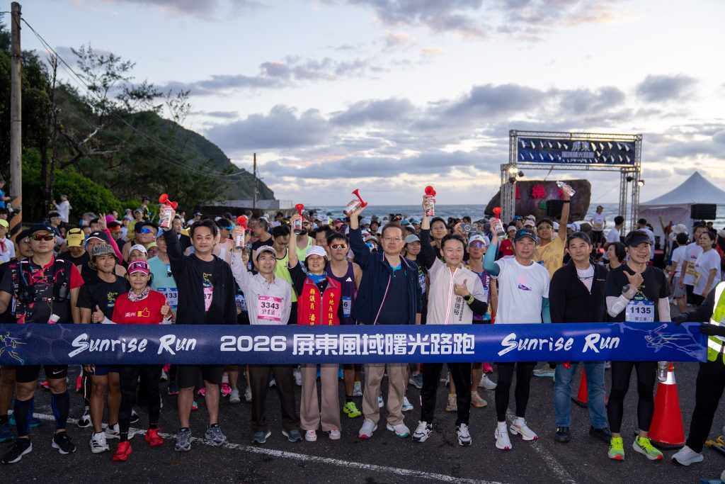 2026屏東風域曙光路跑於元旦清晨在滿州佳樂水風景區開跑,吸引來自全台各縣市及12國家的海外跑者熱情參與,超過千名跑者在清晨的海風與曙光中奔馳,用腳步迎接嶄新的一年。