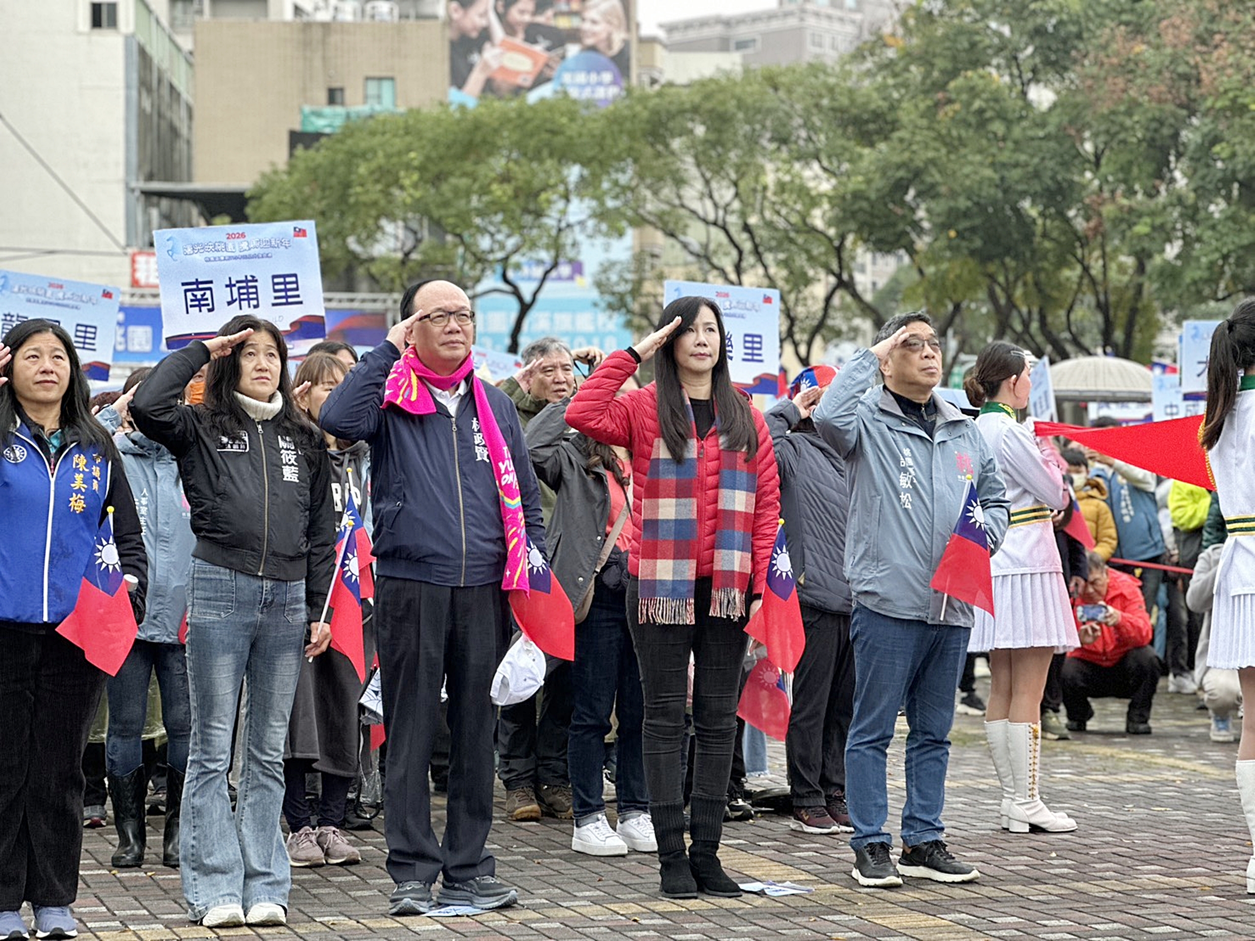 包括立法委員萬美玲、市議員林政賢、于北辰、陳美梅、張碩芳、黃瓊慧及桃園區各里里長等均一同出席桃園區元旦升旗典禮活動。
