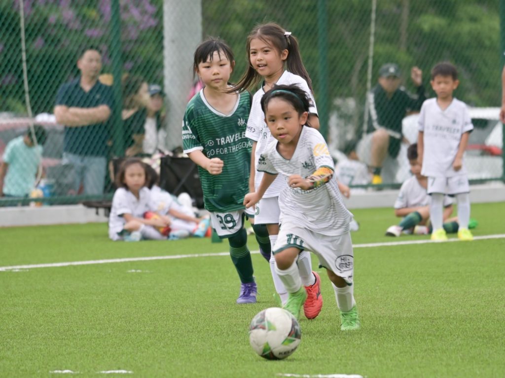 小小足球員在球場上全力奔馳,展現台中深耕基層足球、從小扎根的成果。(記者徐義雄攝)