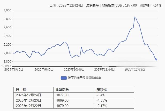 告別2025航運市場,迎接2026新局,2025波羅的海綜合運價指數(BDI)上(十二)月指數一路下滑,且由高峰時期的超過兩千八百點跌破一千九百點, 一個月內跌了近一千點,惟相較於(2024)年同時期BDI低於一千點仍是豐收的一年。(見圖)