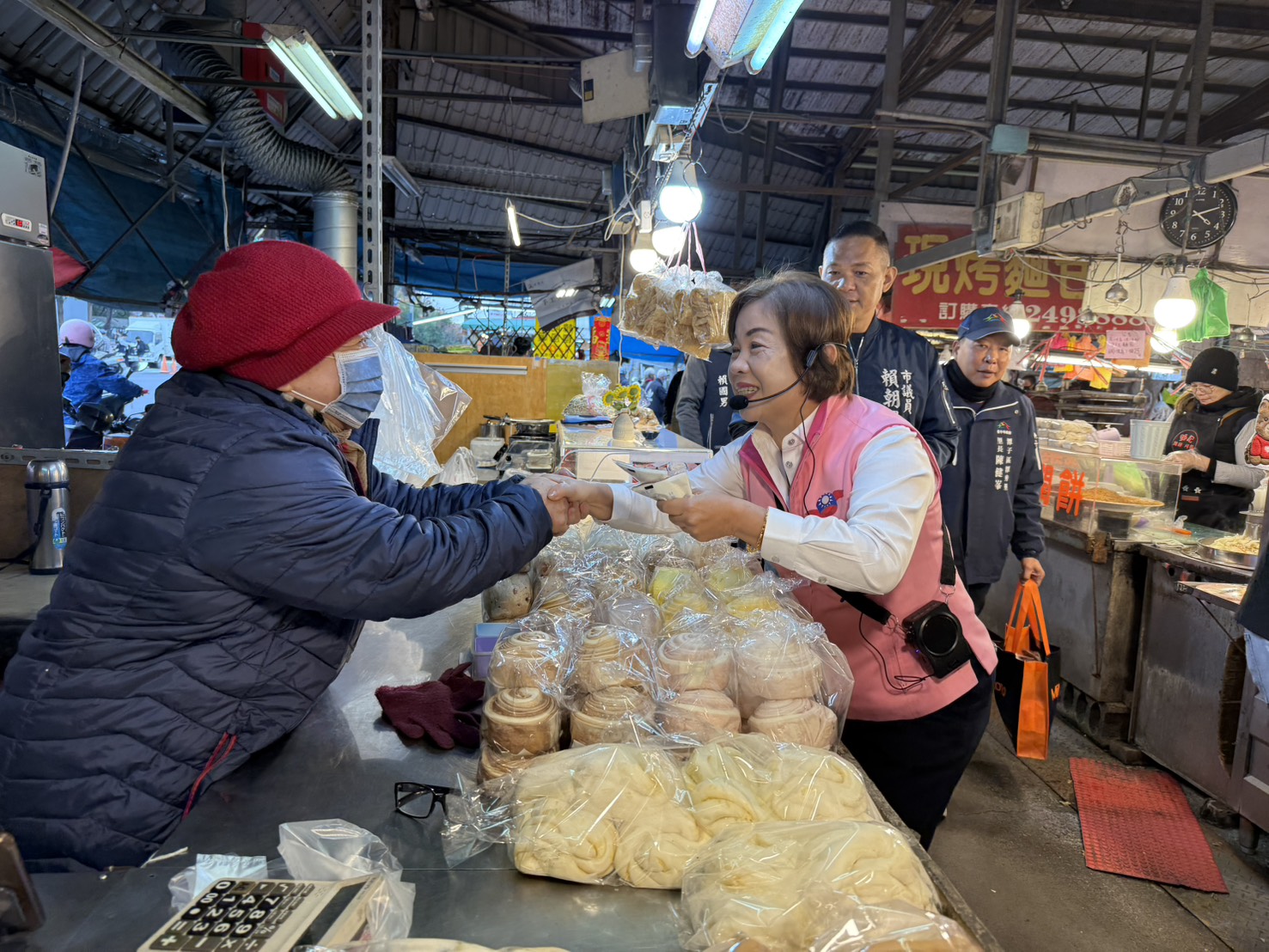 首個上班日,國民黨團甲級動員,楊瓊瓔北上立法院參與重要會議,為中央政策與地方建設持續發聲;下午行程緊湊,立法院會議一結束,隨即趕回台中,下午四點現身潭子區勝利路好康黃昏市場,向市民拜票、問候寒暄。