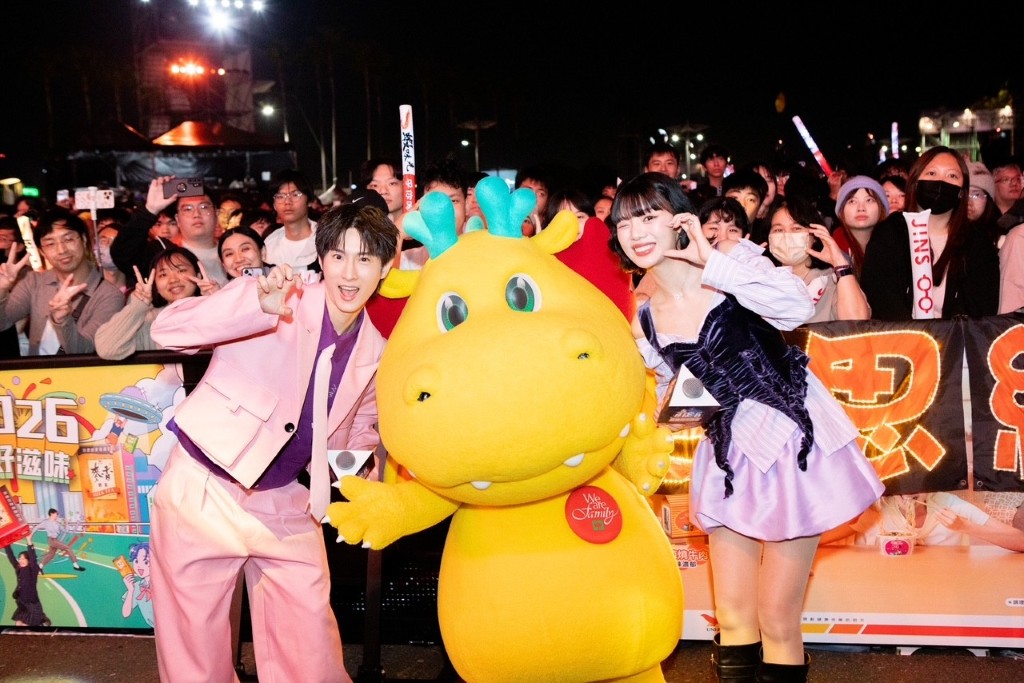 台灣阿龍「驫」向2026!中國信託金融控股公司子公司台灣人壽保險股份有限公司(簡稱「台灣人壽」)吉祥物「台灣阿龍」魅力席捲「雄嗨趴」跨年晚會,與台灣人壽謝壯堃資深副總經理、高雄市長陳其邁和吉祥物「高雄熊」、羽球天后戴資穎,以及30萬名南臺灣民眾齊聚夢時代購物中心攜手跨年迎新,三度登「高」應援的台灣阿龍,超人氣嗨翻現場,大小朋友爭相拍照,「最萌男主角」實至名歸!