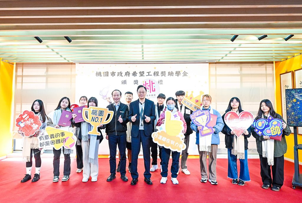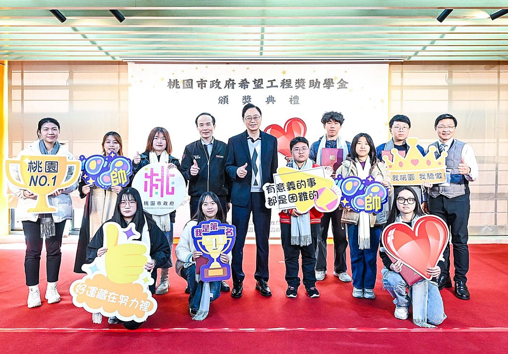桃園市長張善政三日出席「一一四年度希望工程獎助學金頒獎典禮」表示,本次共二十一位高中及大專院校同學獲獎,期盼透過獎助學金的挹注,減輕生活經濟壓力,讓優秀學子能無後顧之憂地專注於學業,期許受獎同學持續努力,在學業及事業上皆有傑出表現,持續發揮互相支持與分享精神,為自己開創更寬廣的未來。