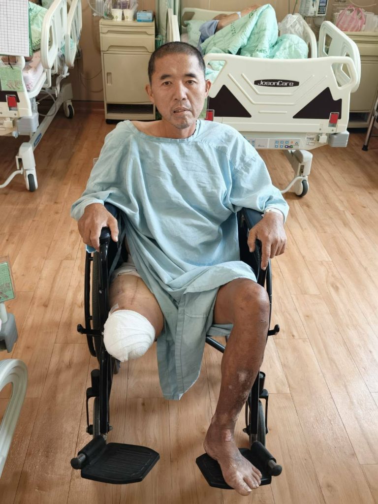 不只被騙錢,糖尿病纏身的葉泳勝還在工地踩到釘子,傷口反覆感染而頻繁進出醫院,去年底終於撐不住了,必需截肢保命,如今還在安南醫院修養中。
