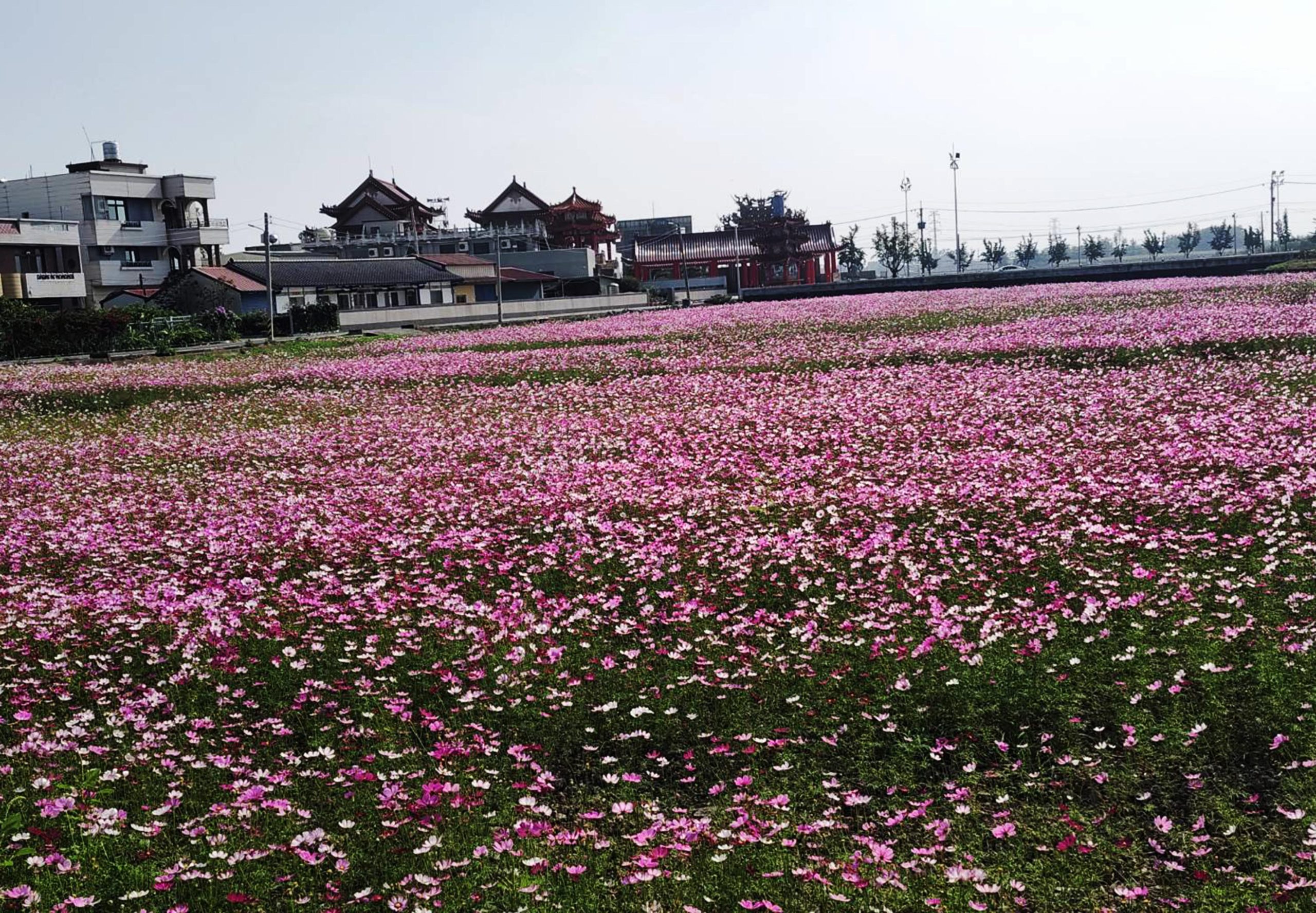 吳長庚表示,這片花海所在地,是近年來地方輔導種植蓮花的地方,在蓮花產季結束後,去年十一月起陸續播種種植大波斯菊、百日草等綠肥作物;占地約一點五公頃、零點五公頃的大波斯菊和百日草,目前正熱情綻放,粉紅、粉紫、紅、橙等繽紛色彩的花海,預估還能再開半個月,冬陽下賞花最療癒,季節限定的美景,民眾不要錯過。