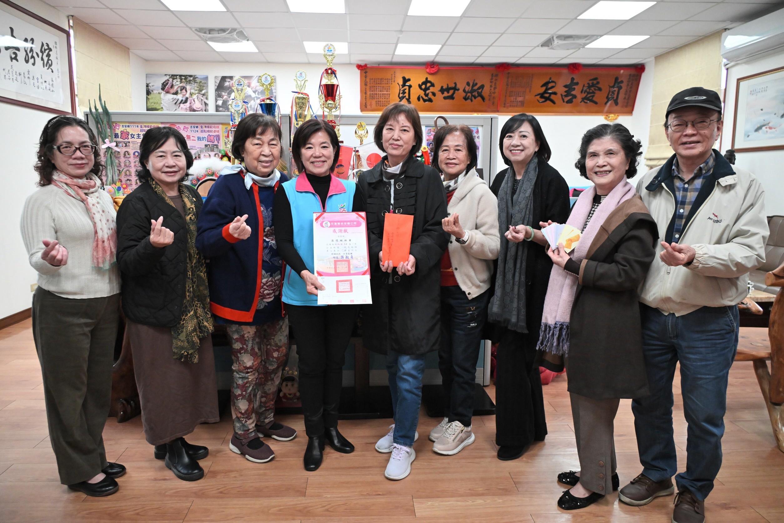 溫情姐妹會長期以實際行動支持吉安鄉建設,肯定鄉長游淑貞如「鐵人」般的施政毅力,四日由前縣府秘書長鍾文欽帶領姐妹會成員前往吉安鄉公所,捐贈五萬四千元認養鄉內路燈。