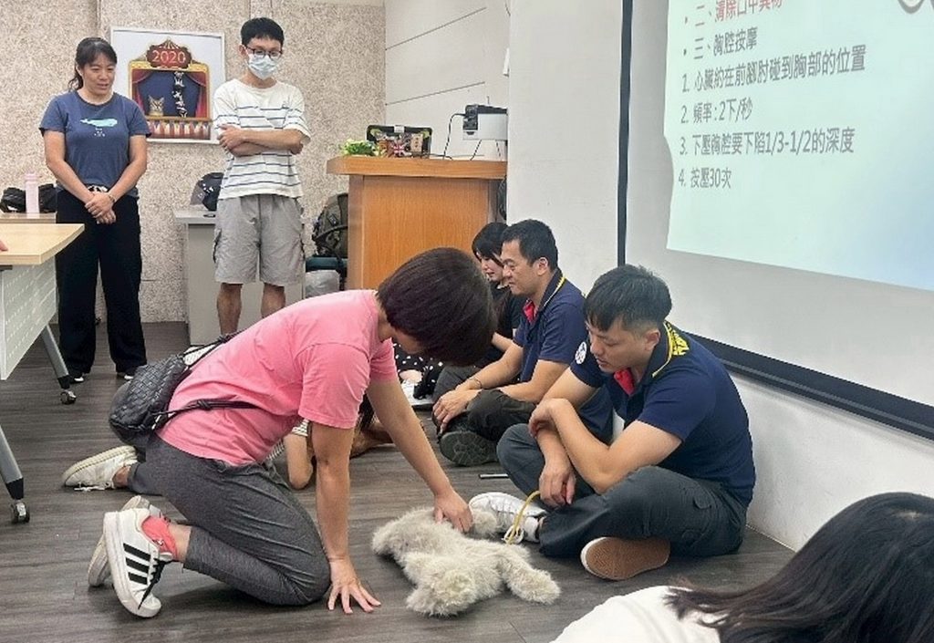 動保處指出,動保處開辦「寵物CPR教學課程」,課程結合現場示範、影片教學與實作練習,並針對犬貓不同胸型,教授正確按壓方式(胸部按壓每分鐘一百至一百二十次),讓學員不只「聽得懂」,更能「做得到」;現場按壓檢視正確急救流程,測試通過後即發放寵物CPR訓練證明卡。