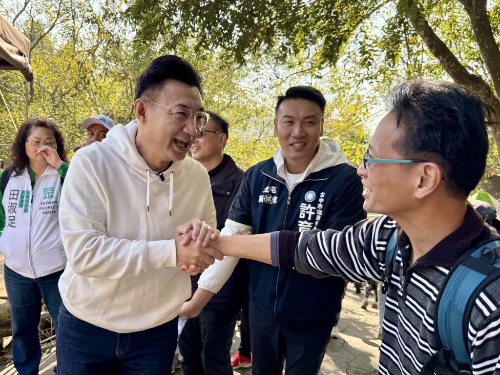 爭取國民黨台中市長提名,立法院副院長江啟臣四日前往北屯區大坑風景區,盼透過低碳旅遊、綠色經濟,打造「旗艦級山林步道聚落」;立委楊瓊瓔則走進傳統市場,與民眾近距離互動。