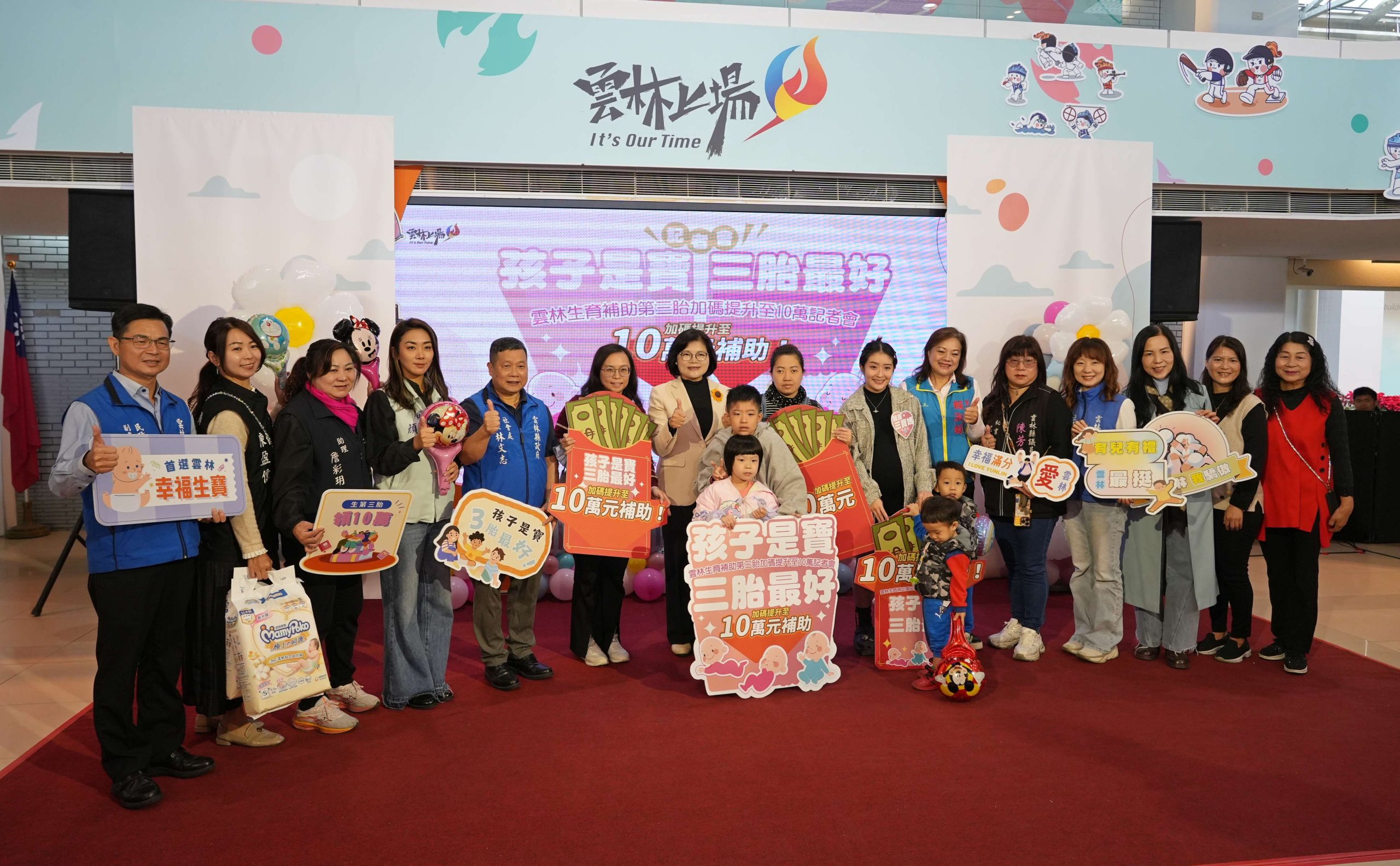 張麗善指出,全國新生兒去年跌破十一萬人,少子化與人口結構問題失衡日益嚴峻,已成為國安危機。縣府於龍年、小龍年推出「萬寶龍計晝」鼓勵生育,今年推動「雲林縣生育補助第三胎加碼至十萬元」催生計畫,呼籲年輕朋友把握適婚、適育年齡,及早生育、安心生養。