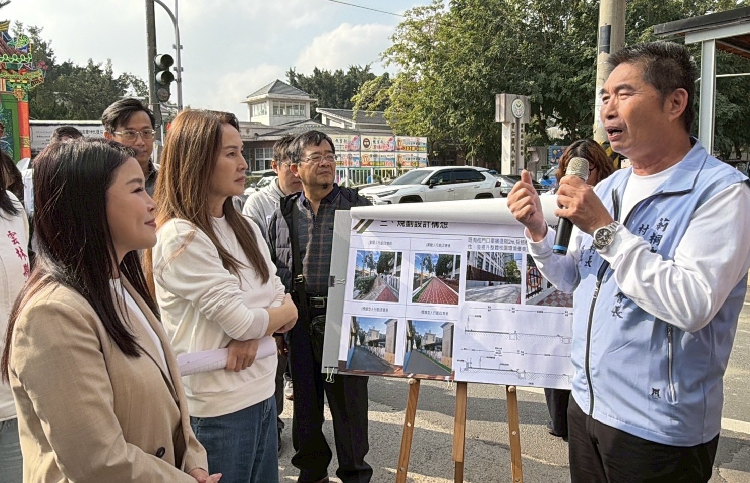張嘉郡說,計畫協調校方將既有圍牆縮二米,騰出空間規劃為家長接送區,有效緩解上下學車流壓力,落實人車分流,讓接送孩子更安心、順暢。再則,新設圍牆採「格柵式透空」設計,搭配校門口壓花地坪,讓校園景觀更通透亮眼。未來通學步道不僅服務學生,更考量與周邊社區活動中心動線串聯,並針對標線型人行道設置適當保護設施與速限管理,確保不同運具與行人的和諧共存。